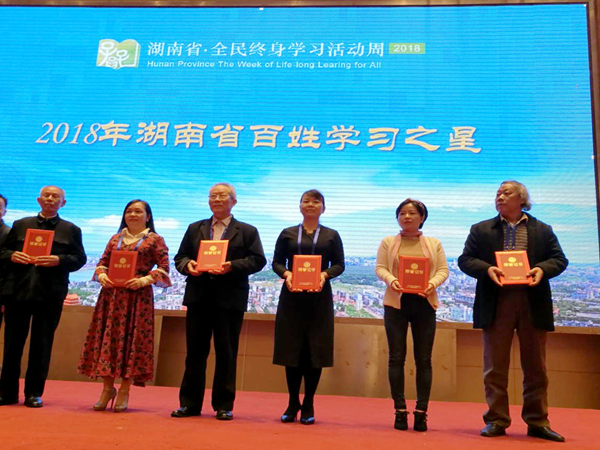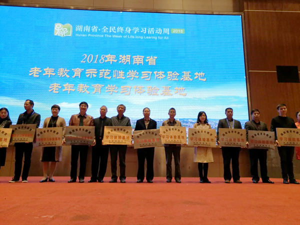 10月19日,2018年湖南省全民终身学习活动周总开幕式在益阳举行。开幕式揭晓了“优秀学习团队”、“终身学习品牌项目”、“百姓学习之星”等奖项,授牌成立了20个省级老年教育学习体验基地(其中6个为老年教育示范性学习体验基地)。由我校选拔推荐、精心指导、培育孵化的所有项目均斩获殊荣。其中“梦焕光彩”学习团队被评为全省优秀学习团队,资兴市“一户一产业工人”培养工程项目被评为深受百姓喜爱的湖南省终身学习品牌项目,郴州市大布江拼布绣有限公司何娟、资兴市老年大学李宙南分别荣获“2018年湖南省百姓学习之星”称号,永兴社区学院被授予湖南省老年教育学习体验基地,北湖区下湄桥社区被授予湖南省老年教育示范性学习体验基地。此外,永兴社区学院因工作出色被湖南省终身教育指导服务中心推荐在总幕式上作典型发言。