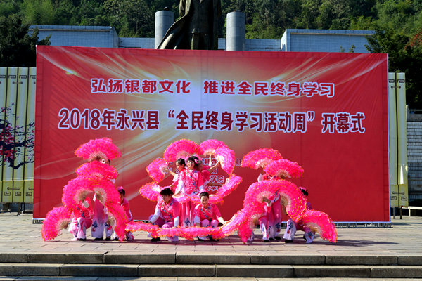 金秋时节,稻黄橙香。11月1日上午,永兴县2018年全民终身学习活动周启动仪式在人民公园黄克诚大将铜像广场举行。启动仪式由县教育局党组书记廖永江主持,市教育局职成科科长周常清,郴州广播电视大学(社区大学)纪委书记谭肖艳、社区教育办主任刘采菊出席,县人民政府副县长周露宣布“2018年永兴县全民终身学习活动周”开幕。