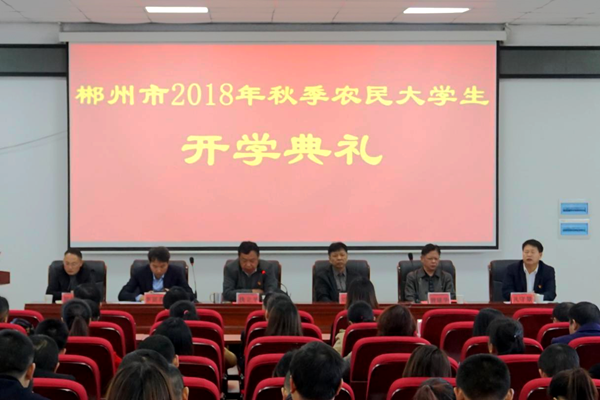 11月9日上午,郴州市2018年秋季农民大学生开学典礼在郴州广播电视大学(郴州社区大学)教学楼六楼会议室隆重举行。市委组织部远教中心主任李富春,市教育局原副局长刘国雄,北湖区组织系统党委专职副书记贺基和,苏仙区委组织部副部长凡守景,郴州广播电视大学党委书记扶立平,党委副书记、校长曾建华,党委委员、副校长陈长春出席开学典礼。市综治办副主任何海清、市农委高级农艺师刘贵权受邀出席当天活动并作专题讲座。开学典礼由扶立平书记主持。