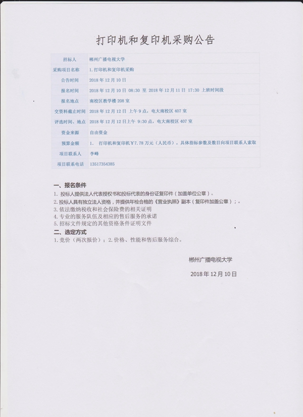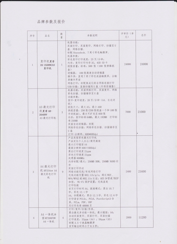 打印机和复印机采购公告