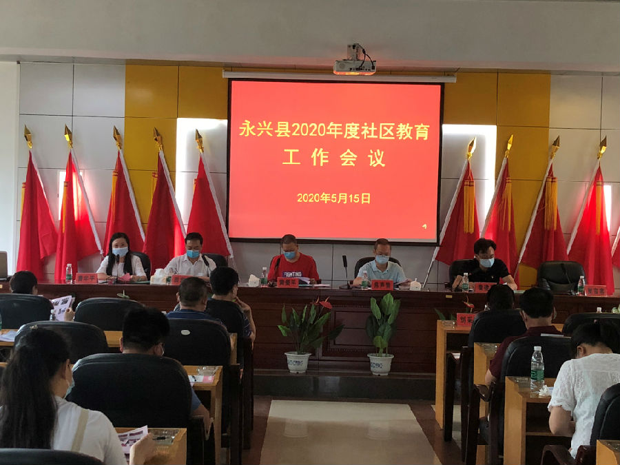 2020年5月15日上午,永兴社区教育工作会议在便江镇周家村学习活动中心召开。会议由永兴社区学院举办。县教育局副局长黄建平作全县社区教育工作报告;郴州广播电视大学党委委员、工会主席黄爱平宣读《关于表彰2019年度优秀社区学校的通报》;永兴电大工作站站长曹华平宣读《永兴县2020年社区教育工作计划》;干劲东路社区学校和惠民路社区学校分别作典型发言;郴州市教育局职成科科长周常清、永兴县人民政府副县长陈声繁分别作重要讲话。全县各社区负责人、青少年宫书吧和教师新村书吧代表、永兴社区学院全体工作人员参加会议。