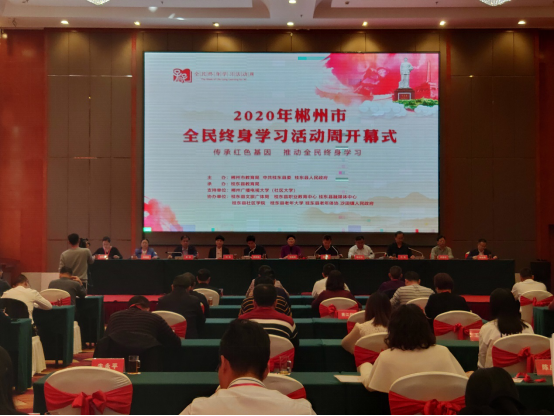 为宣传和展示郴州市终身教育成果,助推学习型社会建设,11月20日,以“传承红色文化基因,推动全民终身学习”为主题的2020年郴州市全民终身学习活动周开幕式在桂东县隆重举行。郴州市副市长贺建湘、桂东县委书记谭建上、郴州市政府副秘书长黄四清、市教育局局长肖正科、市教育局副局长代竞、郴州电大(社区大学)党委书记黄伟、郴州电大(社区大学)校长曾建华等出席开幕式,桂东县相关县级领导、各县市区教育局局长及社区学院主要负责人、社区学校代表、受表彰的先进集体和个人等参加开幕式。