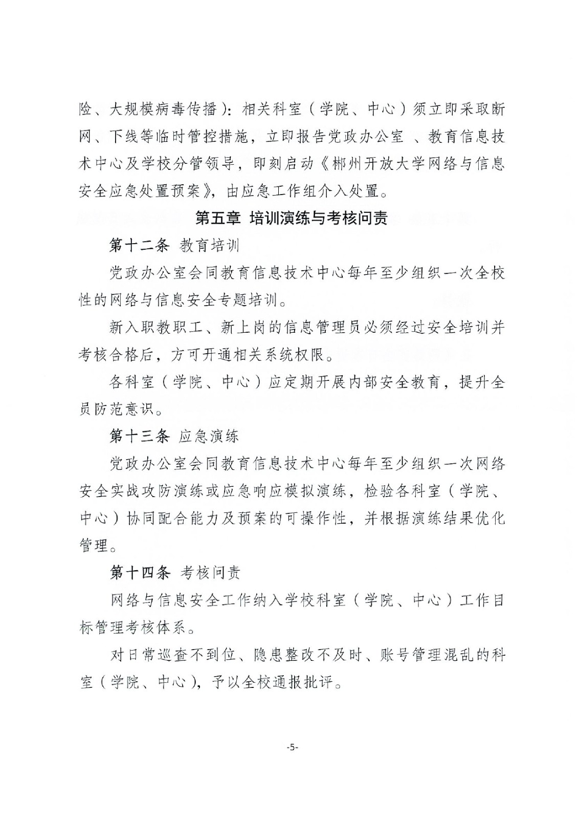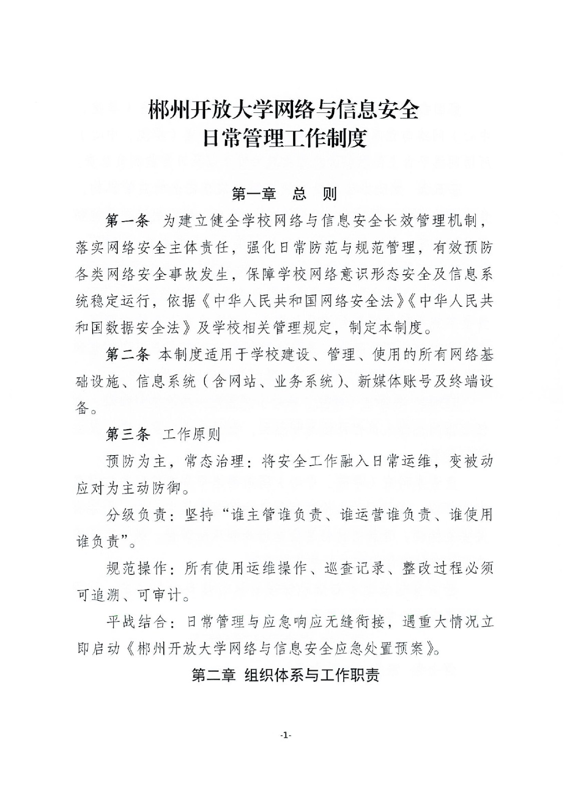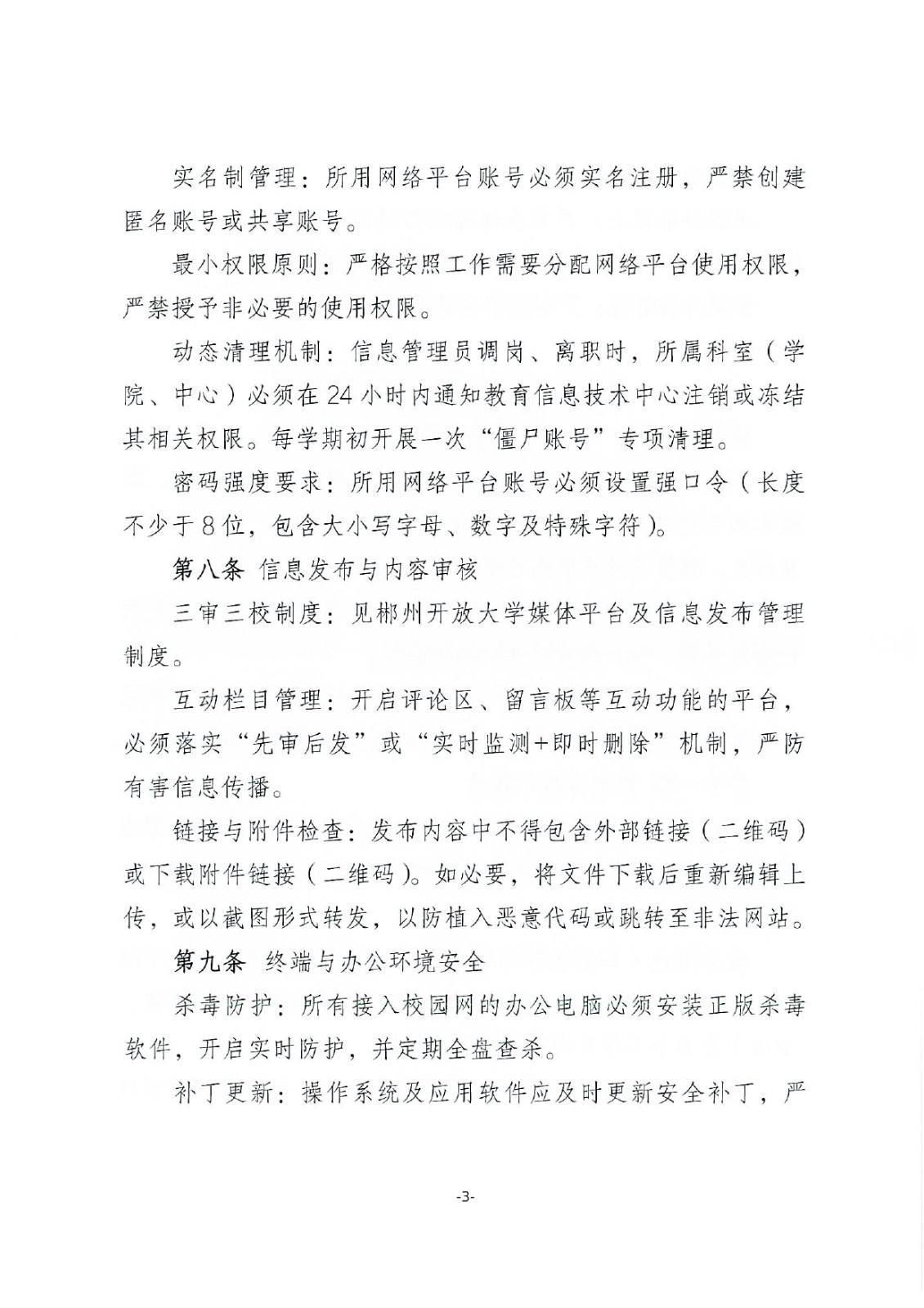 郴州开放大学网络与信息安全日常管理工作制度